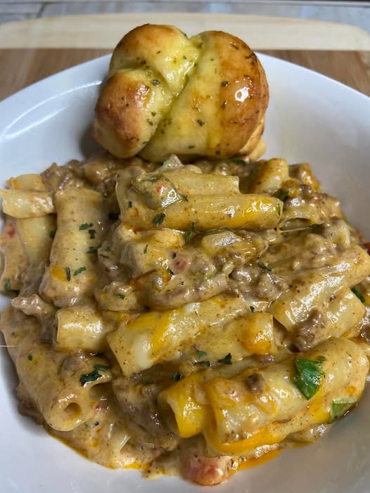 • Creamy Rotel Pasta with Ground Beef & Peppers