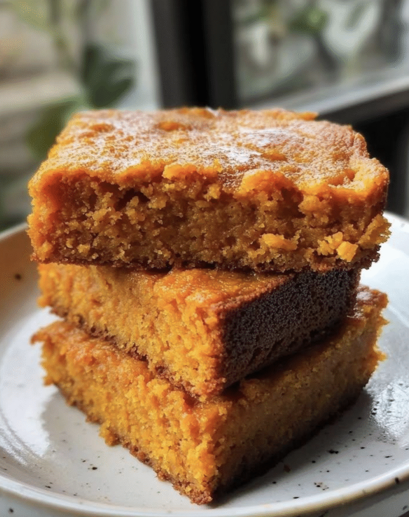 Golden sweet potato cornbread topped with maple honey butter glaze in cast iron skillet