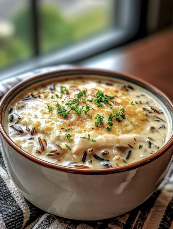 Creamy Chicken & Wild Rice Soup is warm, filling, and deeply comforting. It blends tender chicken, earthy wild rice, fresh vegetables, and a velvety broth that turns simple ingredients into a cozy, hearty meal. Every spoonful combines creamy richness with savory herbs and rustic textures. The soup simmers gently and fills your kitchen with the aroma of comfort. It is perfect for cold evenings, busy weeknights, or anytime you want a homemade, nourishing bowl of warmth. If you love creamy soups that feel wholesome and satisfying, this recipe will become a regular favorite.