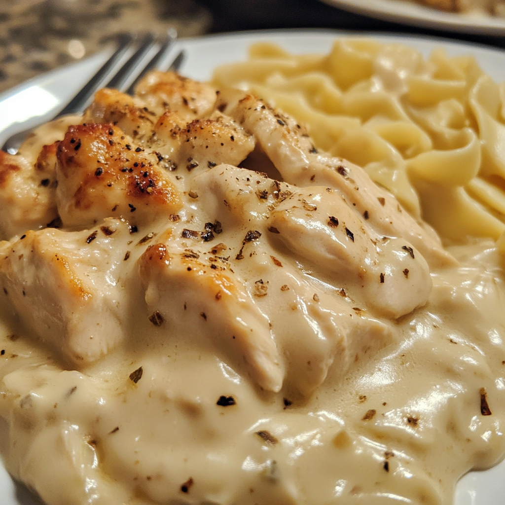 When ready to serve, spoon the creamy chicken over mashed potatoes, buttered noodles, or fluffy rice. Garnish with chopped parsley or green onions for color. The velvety sauce also pairs wonderfully with roasted vegetables or crusty bread that can soak up every drop.