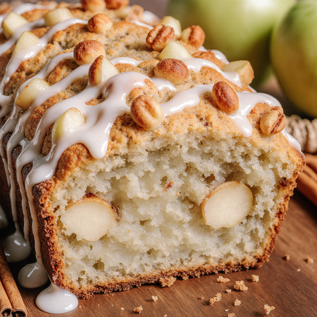 For the Bread: ½ cup unsalted butter (softened), 1 cup granulated sugar, 2 large eggs, ½ cup buttermilk (or milk + 1 tsp lemon juice), 1 tsp vanilla extract, 2 cups all-purpose flour, 1 tsp baking powder, 1 tsp baking soda, 1 tsp cinnamon, ½ tsp salt, and 1½ cups peeled, chopped apples (Honeycrisp, Fuji, or Gala).