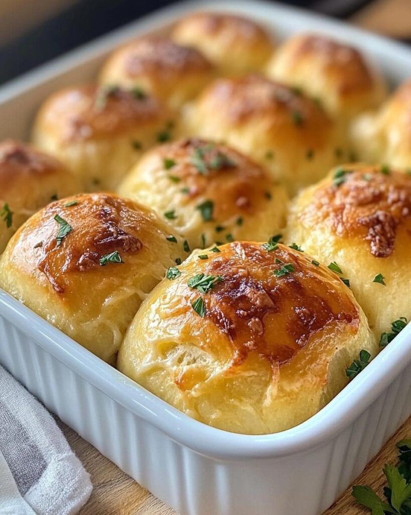 Warm, buttery, golden, and irresistibly soft — these Garlic Bread Rolls are everything you love about classic garlic bread but in fluffy, pull-apart roll form. Each roll is brushed with rich garlic butter infused with herbs, melted over soft pillowy dough that bakes to perfection. They’re the kind of rolls that disappear the moment they hit the table. Whether served with pasta, soups, salads, or holiday dinners, these garlic bread rolls elevate any meal with their heavenly aroma and melt-in-your-mouth texture. Simple to make, bakery-worthy, and absolutely addictive — this is a must-have recipe for garlic lovers and carb lovers alike.