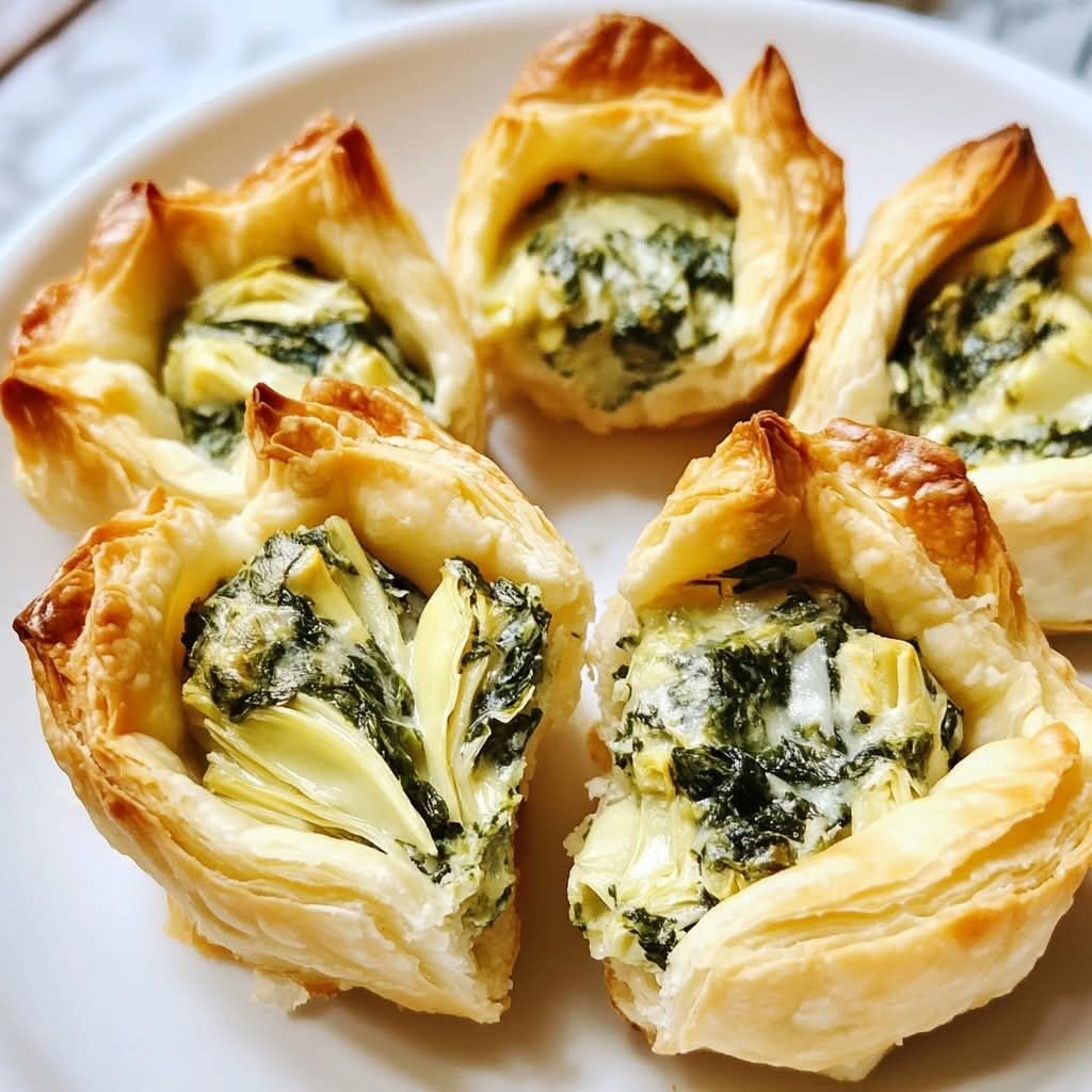 - Crisp, buttery puff pastry and creamy spinach artichoke filling.