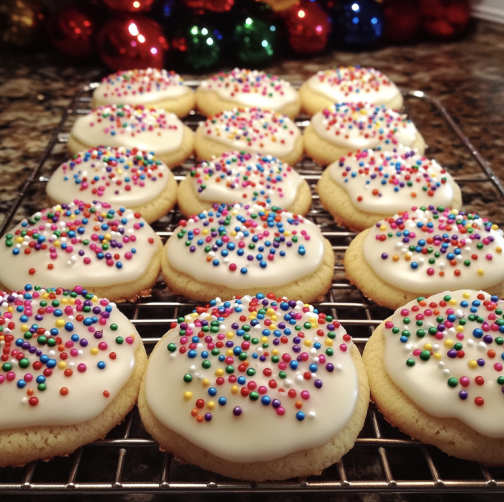 Use room-temperature butter for smooth mixing. Add ricotta or sour cream for extra softness. Don’t overmix—stop when the dough just comes together. Keep cookies small so they bake evenly. Let cookies cool fully before glazing. Add sprinkles immediately—the glaze sets quickly. For thicker glaze, add more powdered sugar. For shinier glaze, add ½ teaspoon corn syrup. Store cookies with parchment between layers. Double the batch—these cookies disappear fast.