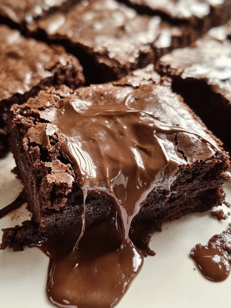 Fudgy homemade brownies with a shiny crackle top cut into squares