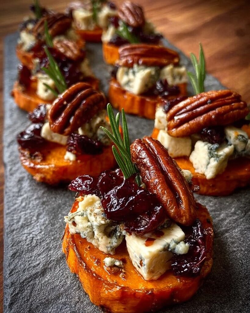 Sweet Potato Rounds with Brie, Cranberry & Pecans | Easy Holiday Appetizer